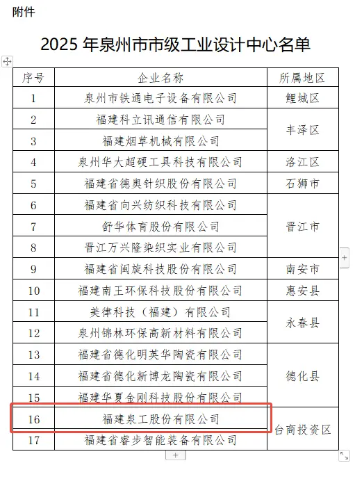 최근 취안저우시 산업정보기술국은 "2025년 취안저우시 수준 산업 디자인 센터 목록 게시에 관한 공지"를 공식 발표했으며, 취안저우 시에는 총 17개 기업이 등록되어 있습니다. 그 중 지능형 벽돌 기계 및 고형 폐기물 종합 활용 장비 분야에 깊이 관여하고 있는 Fujian Quangong Co., Ltd.는 산업 디자인 혁신, 연구 개발 시스템 구축 및 성과 변혁 분야에서 뛰어난 성과를 인정받아 성공적으로 선정되었습니다.