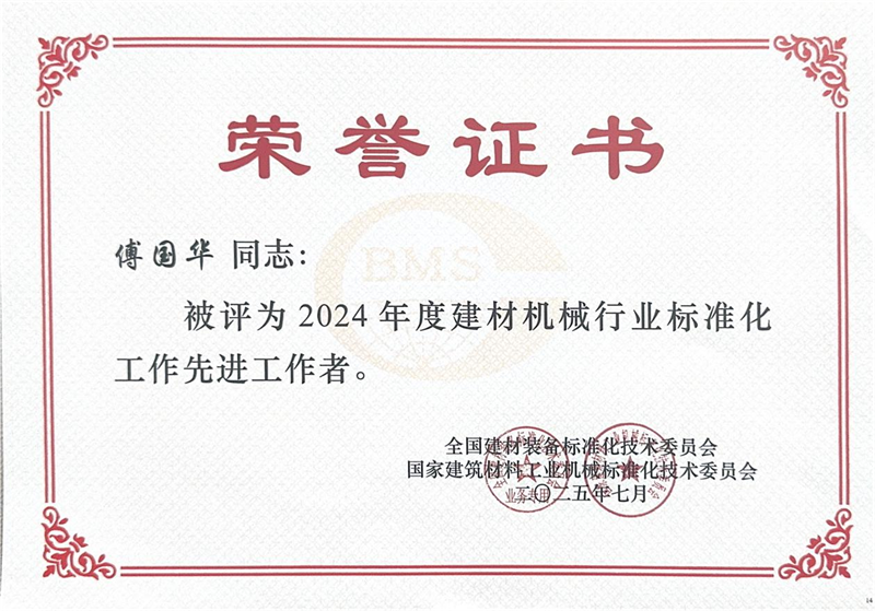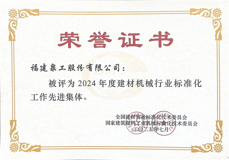 동시에 개최된 표창회에서 Quangong Machinery Co.,Ltd는 "2024년 건축자재 기계 산업 표준화 작업 고급 집단"이라는 칭호를 받았으며 회사의 Fu Guohua 부사장은 "2024년 건축 자재 기계 산업 표준화 작업 고급 작업자"라는 칭호를 받았습니다.