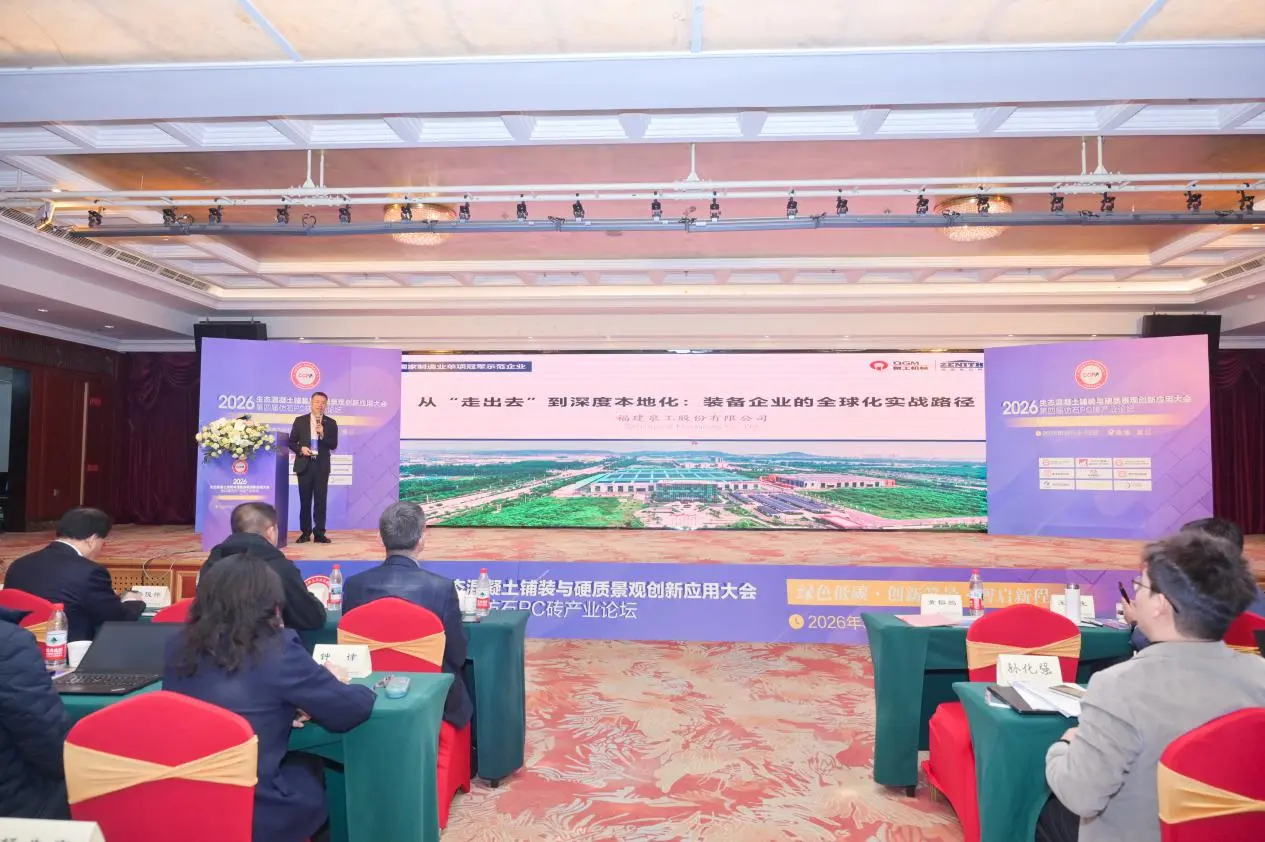 3월 13일부터 15일까지, 모조석 PC 벽돌에 관한 제4차 산업 포럼과 함께 생태학적 콘크리트 포장 및 하드스케이프의 혁신적인 응용에 관한 2026년 회의가 푸젠성 진장에서 열렸습니다. "녹색 및 저탄소: 환경 혁신, 새로운 경로를 지능적으로 계획"이라는 주제로 진행된 이번 컨퍼런스에는 R&D, 제조, 설계, 건설, 테스트, 장비 제조 등 분야의 전문가, 학자, 기업 대표가 한 자리에 모였습니다. 그들은 함께 생태학적 콘크리트 포장 및 하드스케이프 산업을 위한 혁신적인 개발 경로를 탐구했습니다. 푸젠성Quangong 기계 유한 회사이번 행사에 초대되어 콘크리트 제품 ​​제조 장비 분야에서 회사의 기술 성과와 종합 시스템 솔루션을 선보일 전시 부스를 마련했습니다.