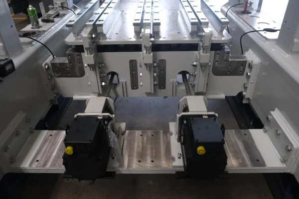 8페이스 믹스 유닛용 유압식 자동 잠금 장치 ZN1200-2S의 메인 머신과 페이스 믹스 유닛 사이의 연결은 고급 유압 자동 잠금 시스템을 통해 이루어집니다. 유압 실린더는 잠금 구성 요소를 구동하여 페이스 믹스 유닛을 주 기계에 단단히 고정합니다. 페이스 믹스 유닛을 분리해야 할 경우 시스템이 잠금을 해제하고 기어드 모터가 페이스 믹스 유닛을 구동하여 레일을 따라 이동합니다.